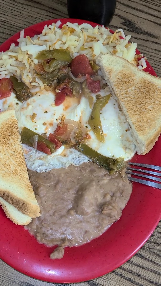 2 Eggs Chicken Fried Steak Hash Browns & Toast